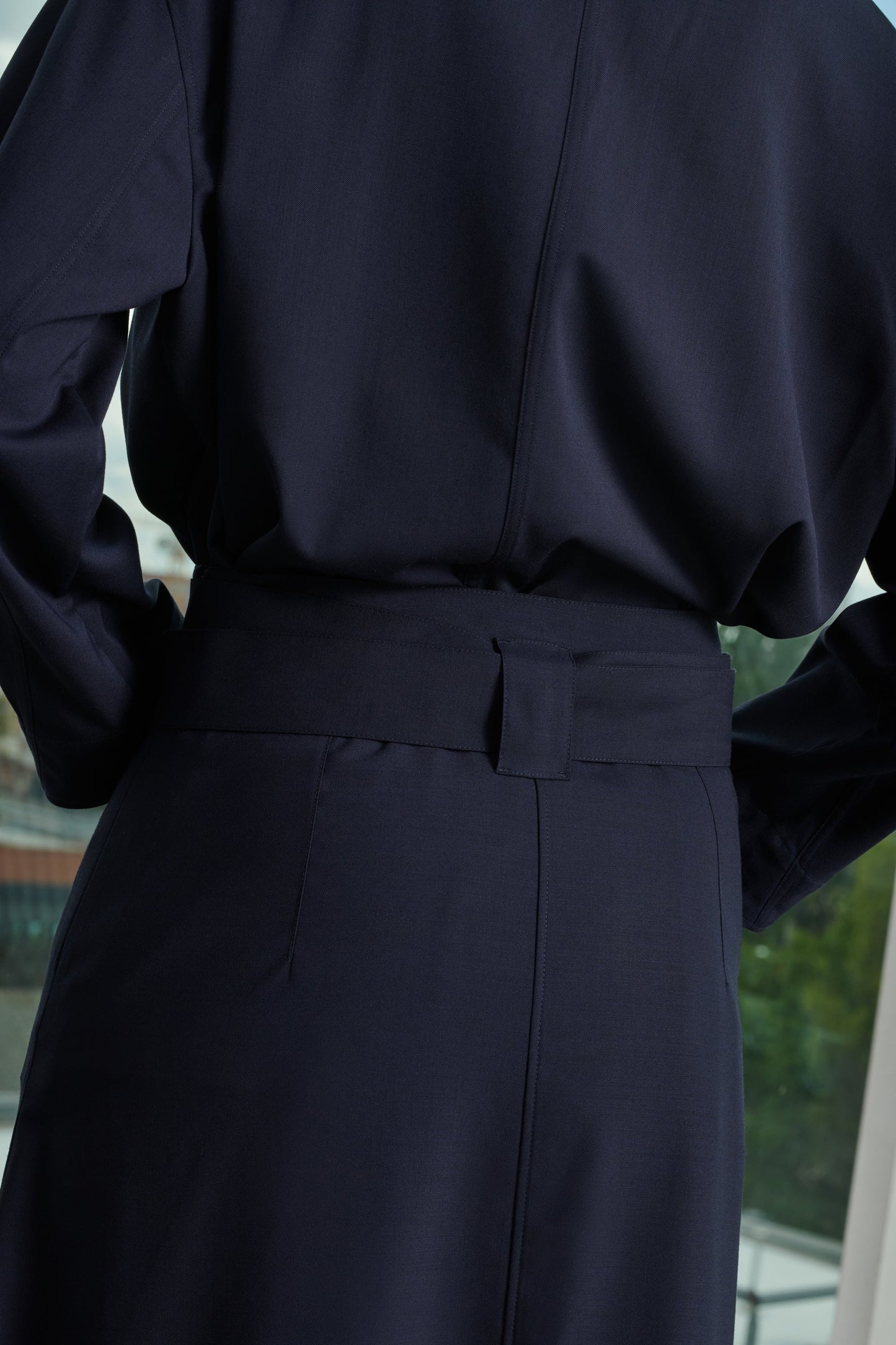 Navy gabardine skirt - Flared maxi skirt- Side zip fastening and removable belt- Two front welt pockets- Side slits This piece is certified OEKO-TEX® Standard 100.